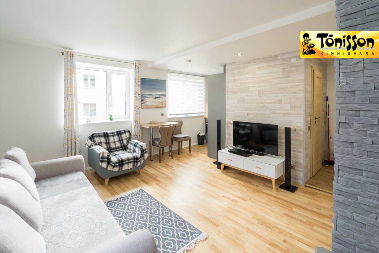 Remonditud korter väikeses majas. Uus mööbel ja kõik eluks vajalik tehnika - TV, toolid, laud, külmkapp, pliit, ahi, pesumasin. Elutuba, magamistuba, esik ja köök, dušš. Tasuta parkimine maja ees.Lähedal: bussipeatus (100m), kesklinn (2,1km), A1000 Market (180m), meri (1,3km).
