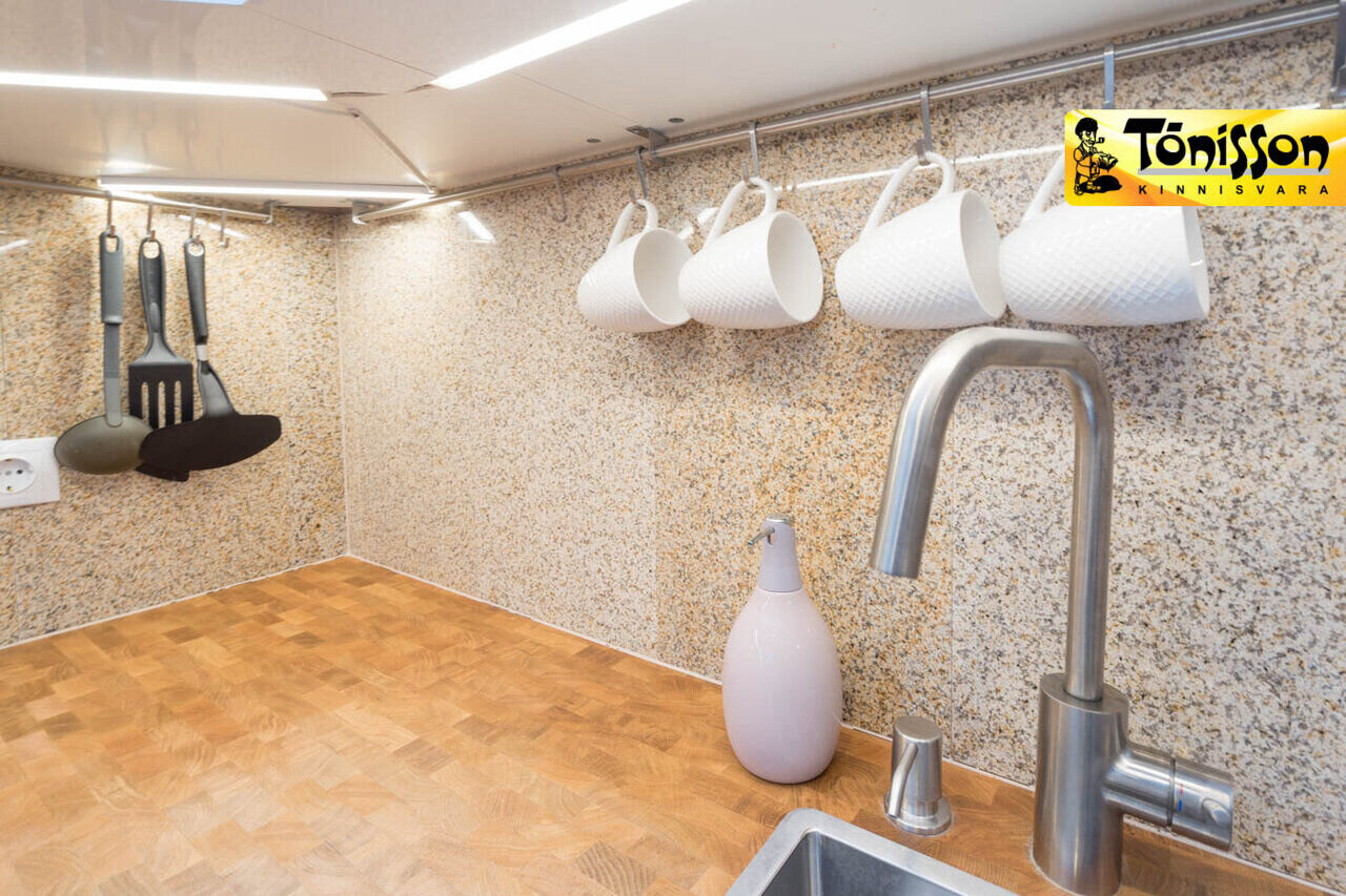 - Köögis on köögimööbel (kapid, kraanikauss, segisti ja töötasapind).